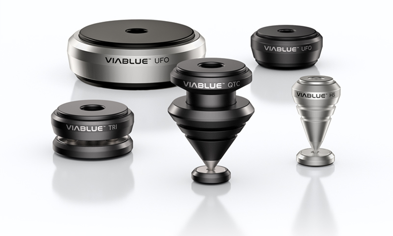Gleich fünf neue Spikes und Absorber-Varianten aus hochwertigen Materialen bietet der deutsche Hersteller ViaBlue GmbH. Die massiven Gerätefüße mit einem Durchmesser von bis zu 6,5 cm sind ab dem 20. Mai in Schwarz und Silber erhältlich und absorbieren Vibrationen von Geräten und Lautsprechern mit bis zu 200 kg Gewicht. Verschiedene Befestigungsalternativen stehen für jeden Bodenbelag und für die unterschiedlichen Montagebedürfnisse zur Verfügung. Die Preise beginnen bei 53 Euro pro Vierer-Set.